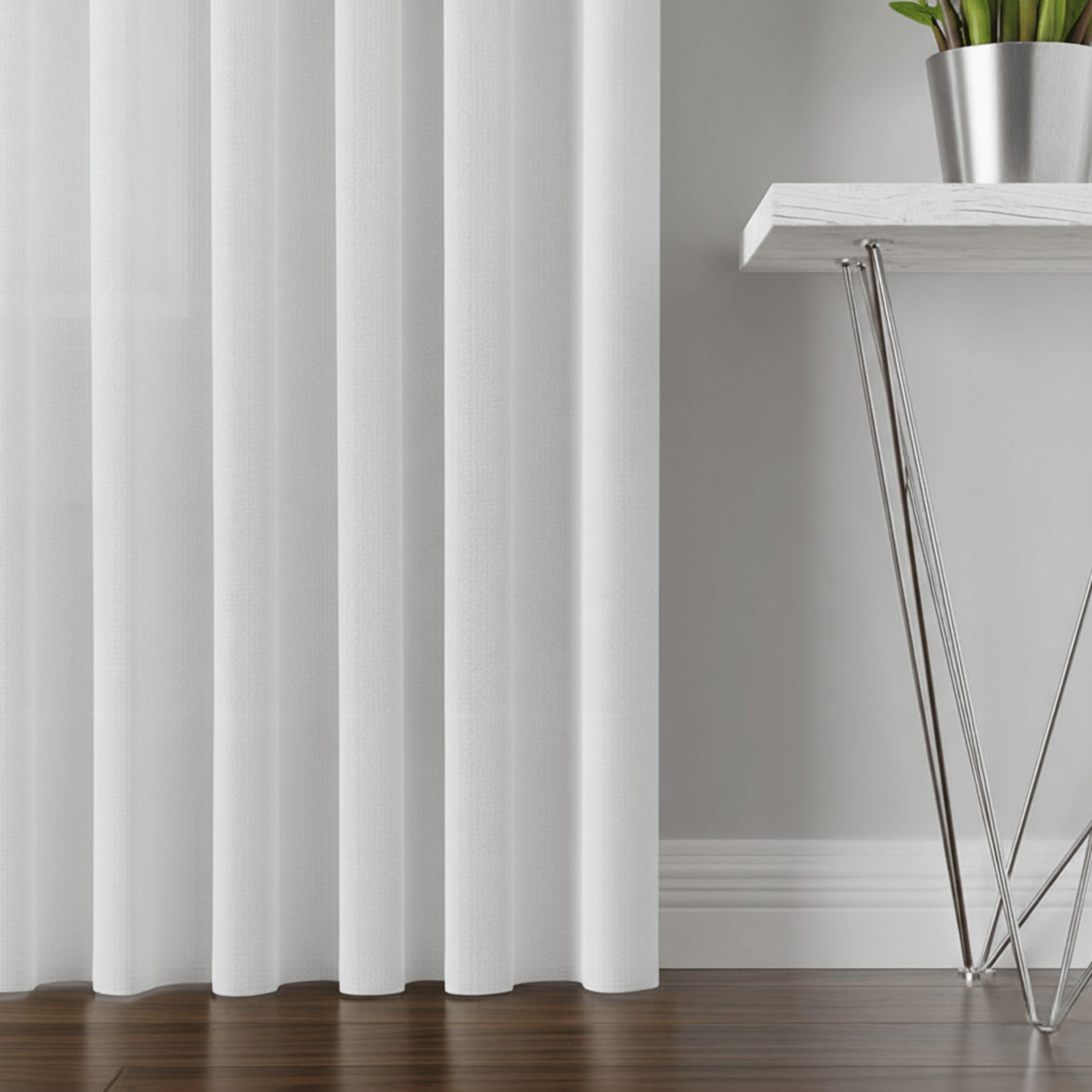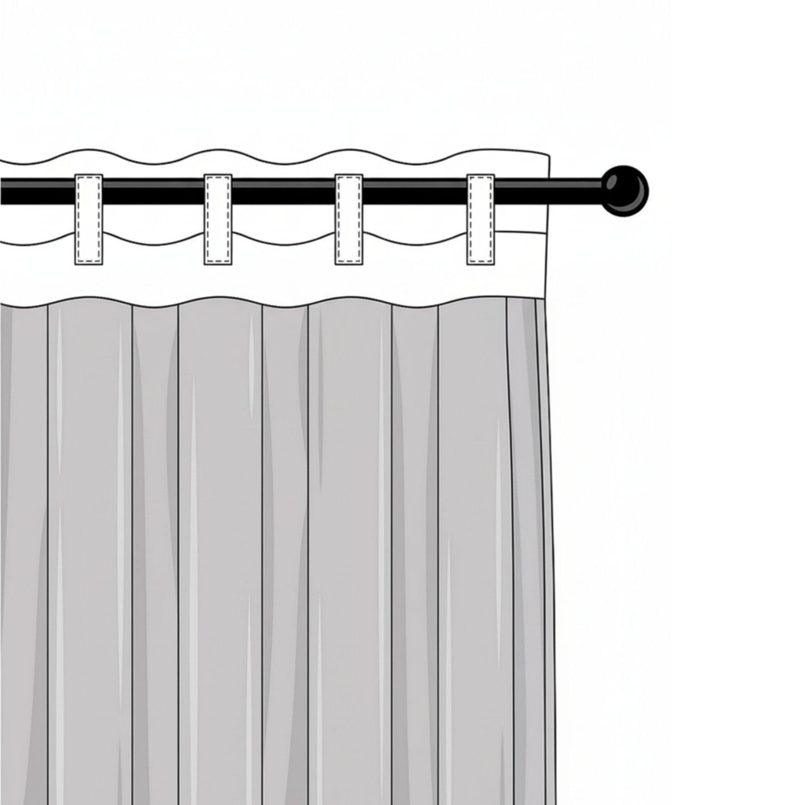 Der Vorhang verfügt über eine eingenähte Wellenschiene, die das Aufhängen direkt an der Gardinenstange ohne Ringe oder Haken ermöglicht. Zusammen mit dem dezenten Bleiband am unteren Ende sorgt dies für einen ruhigen, gleichmäßigen Fall und klare, gleichmäßige Wellen bis ganz nach unten.