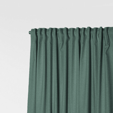 CYRUS er ét luksuriøst færdigsyet gardin med et tæt vævet stof, der falder tungt og elegant i markante waves. Gardinet er designet til at skabe en rolig belysning i hjemmet – og det tætte materiale dæmper effektivt lysindfaldet uden at mørklægge helt.