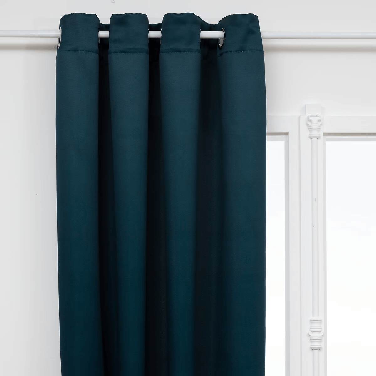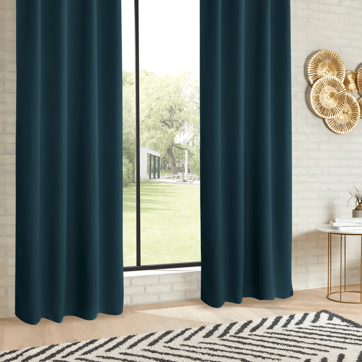 ODELIE ist ein stilvolles Verdunkelungsvorhang in einem tiefen ägäischen Blauton, der Ruhe, Privatsphäre und vollständige Abdunkelung schafft. Der Vorhang besteht aus dicht gewebtem, Oeko-Tex-zertifiziertem Polyester und verfügt über robuste Metallösen, die eine einfache und schnelle Montage an bohrfreien Gardinstangen ermöglichen.